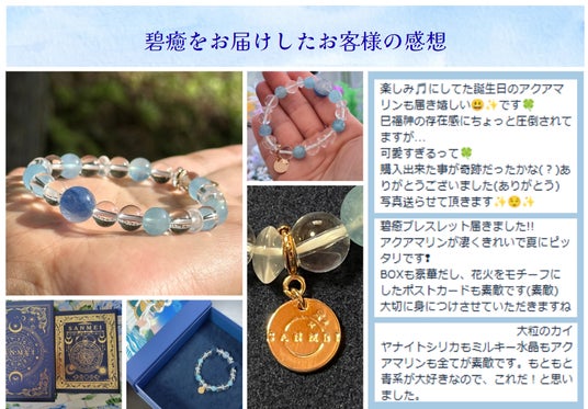 そこでフォロワーさんにもこの花火大会を知ってもらい、一緒に楽しむプレゼント企画として10本限定で「アクアマリン特選ブレスレット」をご用意したのですが、商品化を望む声が多く上がり、予想外の商品化が決定。