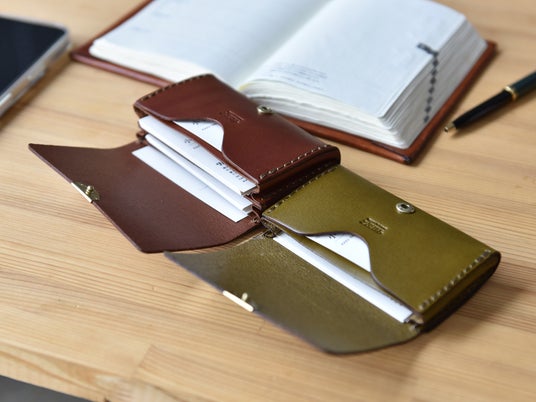 スタンダードな構造で使いやすい名刺入れ。ホック式で簡単に開け閉めが可能です。
