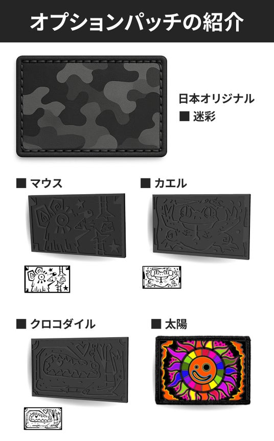 カスタムパッチは、裏側のワンタッチテープでベルトに付けられます。