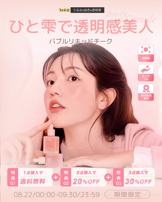 株式会社HHO(本社:中国浙江省杭州市、日本支社:東京都杉並区下高井戸)が運営する越境ECプラットフォーム「7sGood」は、スキンケアとメイクのハイブリッド製品に特化した韓国のデジタルネイティブブランド「LIZDA(リズダ)」の主力製品である「ゼロフィット カラーカプセルブラッシャー」(品目名:バブルリキッドチーク)を、2025年8月22日(金)より日本市場にて世界で初めて発売いたします。