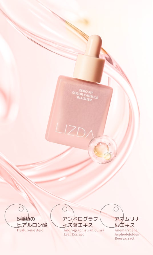 LIZDAは、スキンケアとメイクアップのハイブリッド製品に特化した韓国のデジタルネイティブK-Beautyブランドです。ブランド哲学である「ゼロフィット」を基に、まるで”セカンドスキン”のように軽量で通気性が良く、潤いに満ちたメイクアップ体験を提案。独自の「マイクロカプセル技術」をファンデーションからブラッシャーに至るまで一貫して展開し、強力な技術的ストーリーを構築しています。