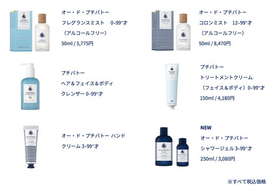プチバトー ナチュラルボディケア 製品ラインナップ