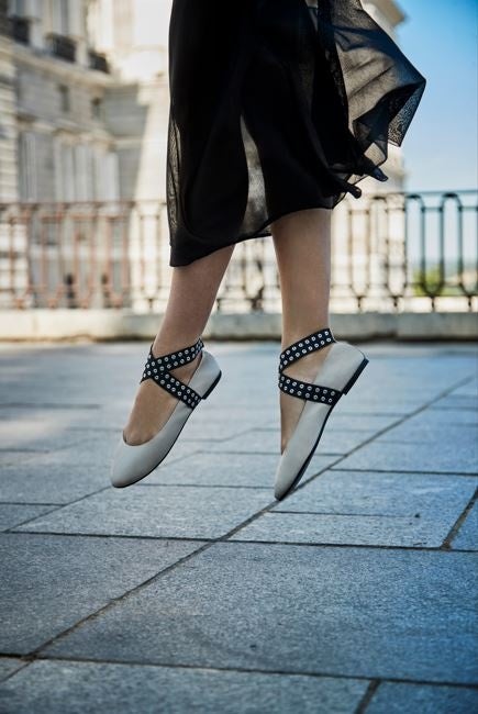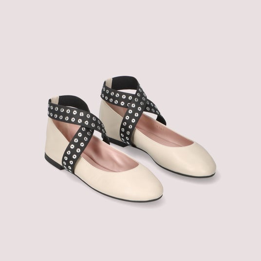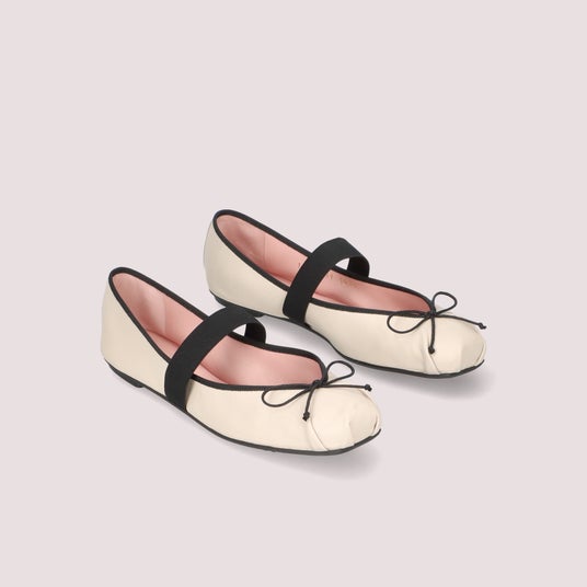 上質な羊革とクロスバンドを採用し、快適な履き心地とバレエコアなムードを両立。