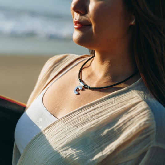 また、首・肩の必要部分に絞る事で、ネックレス全体の軽量化も意識し