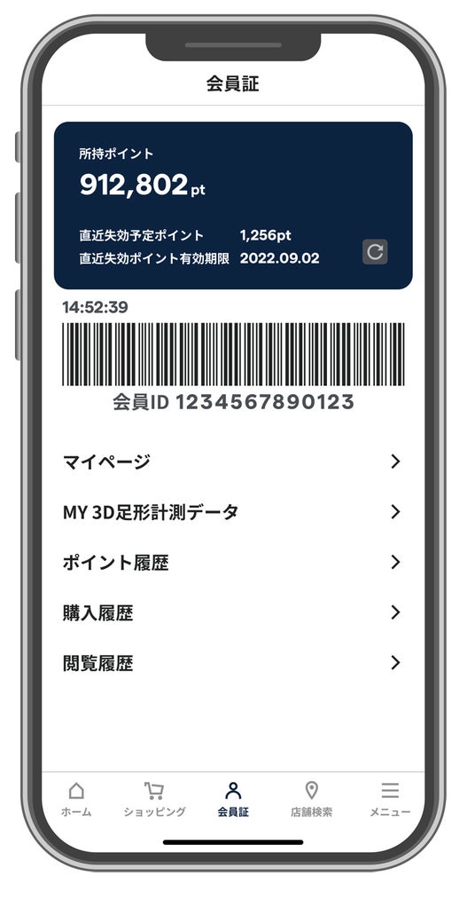 1. 会員証タブ内「MY 3D足形計測データ」をタップ