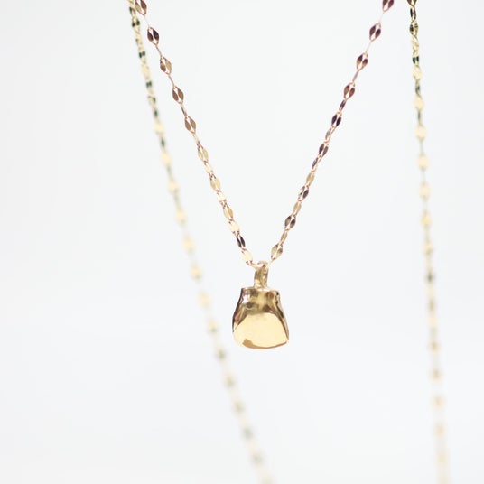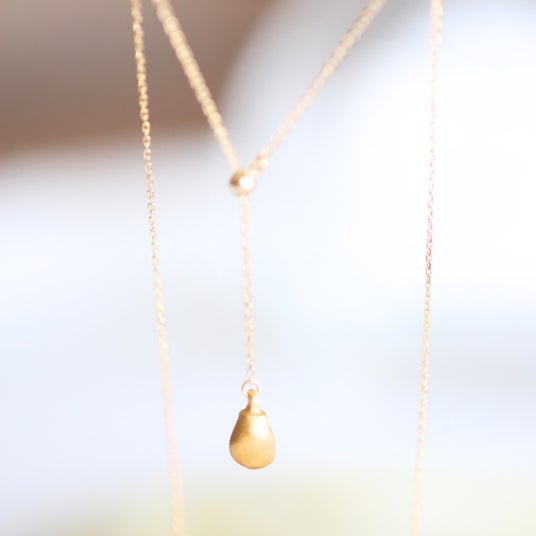 金乳歯(R)ジュエリーは、抜けた乳歯をかたどったゴールドのオブジェをベースにした世界で唯一の記念ジュエリー。歯科技工士が一点ずつ手作業で作り上げた金乳歯(R)のトップスを、老舗のジュエリーメーカーの手により繊細なジュエリーへと仕立てます。