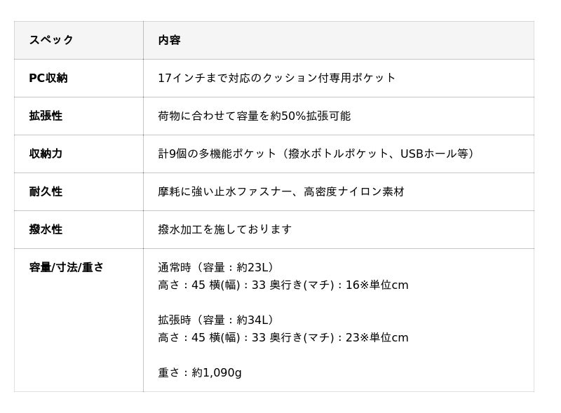 「無重力リュック」について