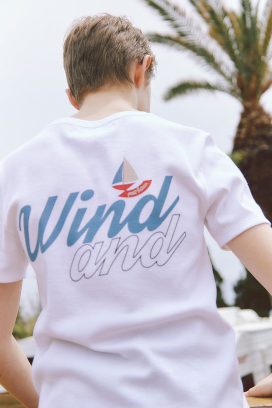 海や自然を愛する2つのブランドが出会い生まれたコレクションは、プチバトーが1893年から培ってきたノウハウから生まれた心地よいTシャツやパジャマに、WIND AND SEAのグラフィックをプリントしたモダンなコレクションです。両ブランドのユニークなアイデンティティを掛け合わせて生まれたアイテムは、ベビーからキッズまでお揃いで着られます。