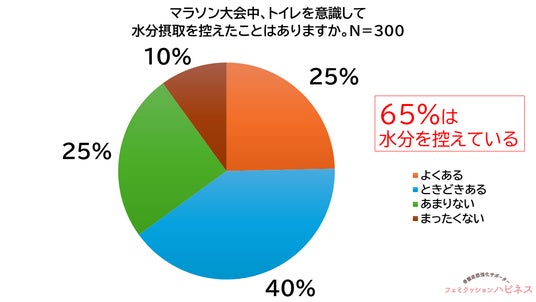 マラソン大会中は水分を我慢している65%【フェミクッションハピネス調べ】