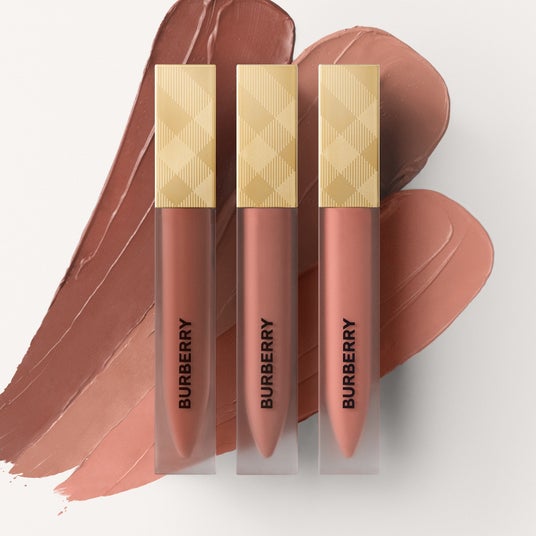 繊細なクリーム ティーや、クラシックなダージリン ブラウン、存在感のあるチャイ ブラウンなど、どのシェードも肌のトーンを問わず美しく映える仕上がりに。バーバリー キス マットはヒアルロン酸*配合で長時間うるおいをキープしながら、上品なマットフィニッシュを実現。バーバリー キス リキッド マットは、軽やかでクリーミーなテクスチャーが唇に密着し、鮮やかな発色とスムースな仕上がりを叶えます。