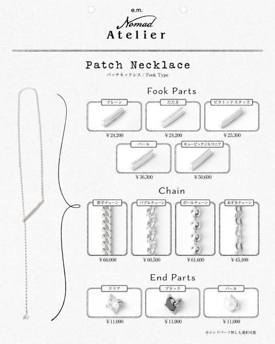 様々なチェーンやパーツを繋ぎ合わせて仕立てる、オリジナルネックレス。