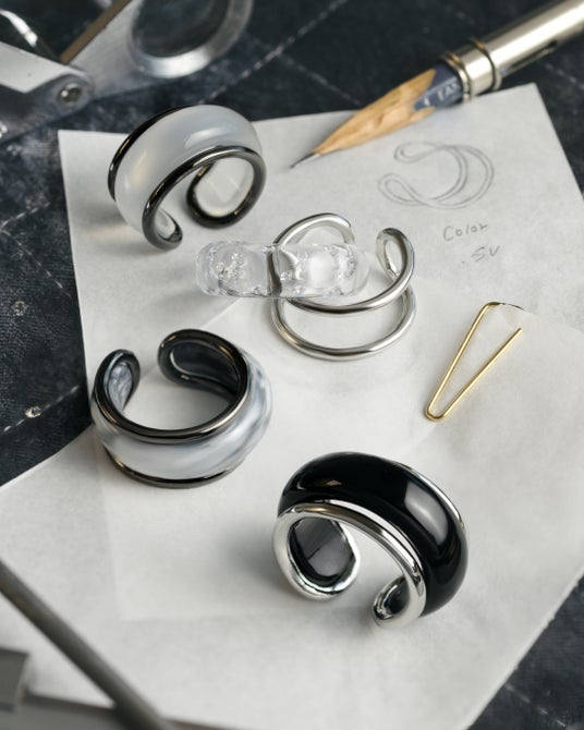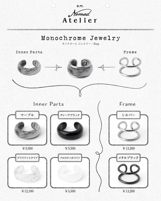 イヤーカフとしても着用可能なリングは、フレームとインナーパーツを組み合わせる仕様。セットでの販売となります。