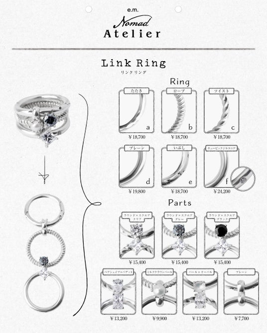 7種類からお好みでセレクトしたパーツで繋ぎ合わせる多連リング。