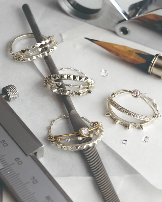 様々なピースを自分好みに組み合わせていくことで完成するジュエリー。