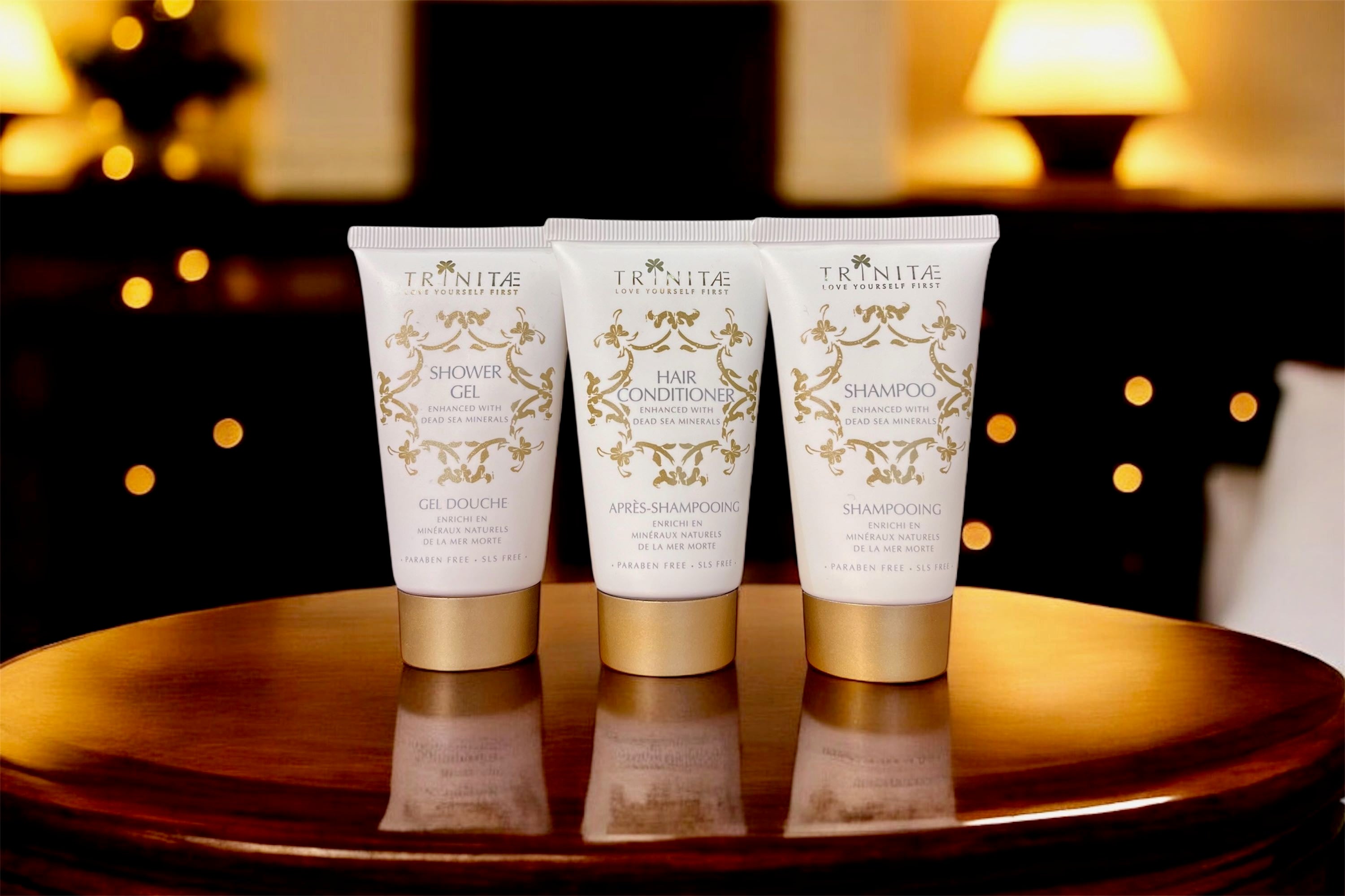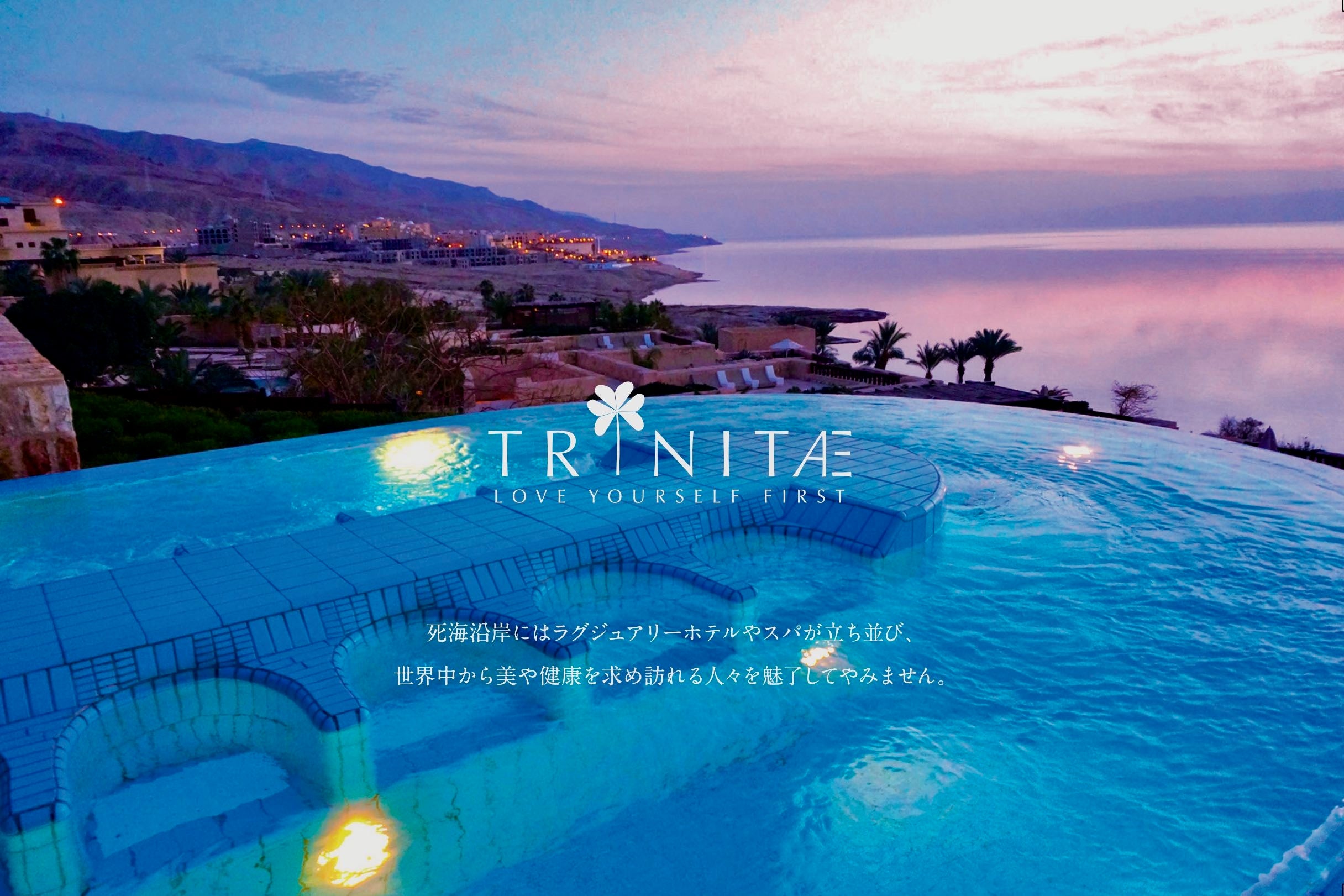 ヨルダンの死海沿岸に並ぶ高級リゾートホテルでは、TRINITAE製品を使用した客室アメニティやスパトリートメントが提供されています。