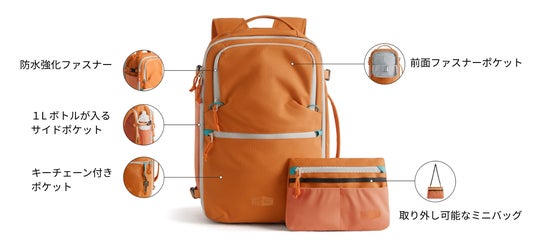 本製品には、軽さと耐久性のバランスに優れた300デニールの高密度オックスフォードポリエステル生地を採用。独自の撥水加工により、高い防水性を実現するとともに、日常使いや旅行などさまざまなシーンでの長期間の使用にも耐える強さを備えています。