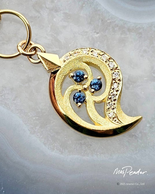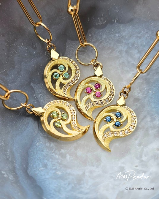 誰もが知るモチーフである勾玉をジュエリーにした今作は、MasPender.のジュエリーが多くの方にとって唯一無二のお守りのような愛され方をしている事から、太古からお守りとして身に付けられた勾玉を現代ジュエリーとしてお守りのように心を豊かに導くジュエリーとして楽しめる作品として誕生しました。