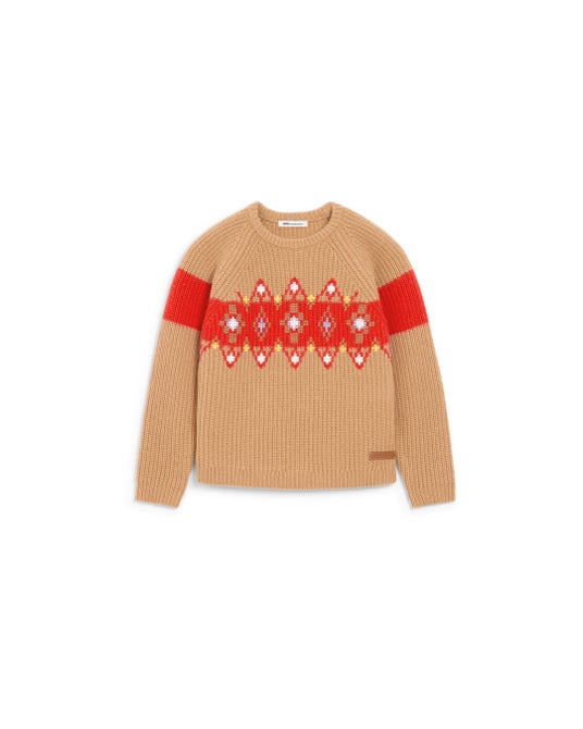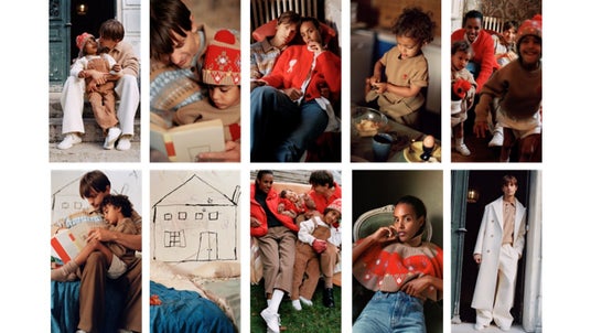 モデルのエディはアイコニックなAmi de Cœurのロゴ入りポロセーターを、モナはフェアアイル柄のラッフルポンチョを纏い、子どもたち――イドリスとイマニは、今回初登場となるAmi Parisのキッズコレクションを着て、テディベアと無邪気に遊びます。エフォートレスな着こなしの中に、親密な温もりと純粋な喜びが静かに息づいています。