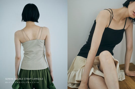 同時発売の『SERENE DOUBLE STRAP CAMISOLE』とのレイヤードはもちろん、