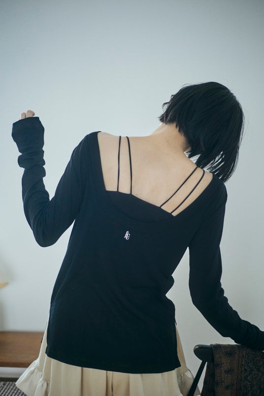 大胆に背中を開けたデザインが、余裕のある抜け感を演出。