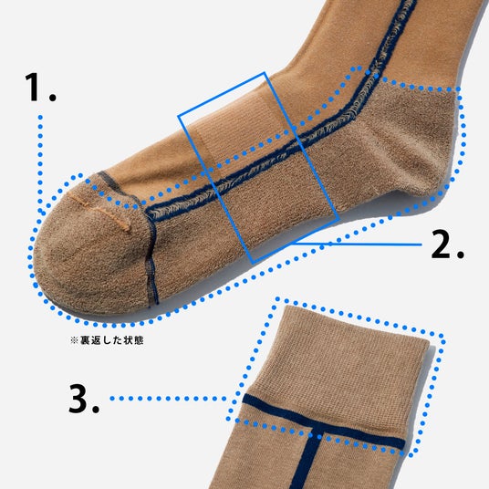 3、長めの履き口が圧力を分散し、締め付けが少なくずれ落ちにくい