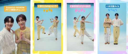本CMは、エッセンシャル公式SNS(X、Instagram、TikTok)にて公開。さらに、ユニークな3つのテーマに挑戦するダンスチャレンジ動画や、撮影舞台裏に迫るメイキング映像、「ROIROM」へのスペシャルインタビューも配信いたします。