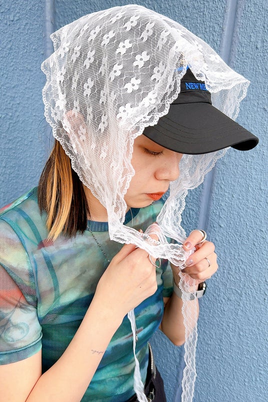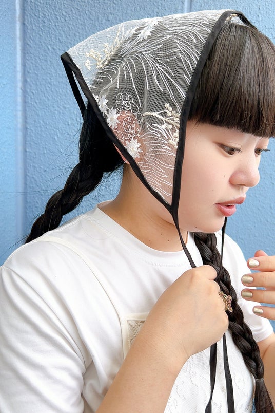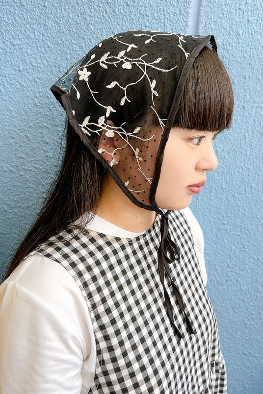 顎の下で結ぶのも今っぽくてオススメです。