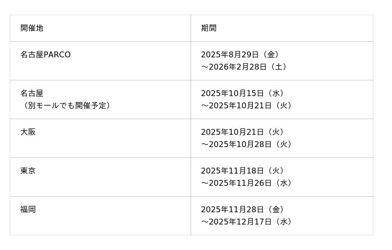 なかでも名古屋PARCOでは、初となる約半年間にわたる長期POPUPを実施いたします。さらに、九州エリアでは初出店となる福岡でのPOPUP開催も決定し、より多くのお客様と直接お会いできる貴重な機会となります。