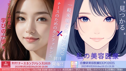 2025年8月28日(木)東京・原宿のWITH HARAJUKU HALLにて、同日開催される『自費研ナースカンファレンス』と『自費研美容医療EXPO2025』。一日をとおして、「学び」と「つながり」をつくり、そして正しい情報を提供する空間をご用意いたします。