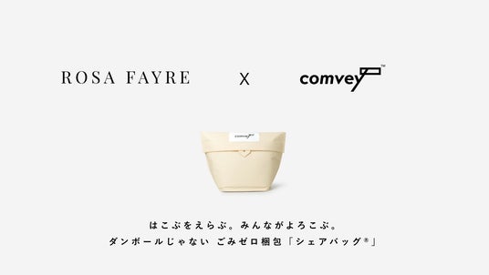 株式会社comvey(コンベイ、本社:東京都中央区、代表取締役:梶田 伸吾)は、ロサ・フェア株式会社(本社:東京都中央区、代表取締役:柳井 瀬那)が展開する「ROSA FAYRE」公式オンラインストアに、郵便ポストに返却できるリユース梱包「シェアバッグ(R)︎」およびオペレーションシステムが導入されたことをお知らせ致します。本サービスの導入により、利用者の梱包ストレスを解消できるほか、配送で発生する梱包ゴミを最小限に抑え、ダンボール回収やゴミ焼却時に発生するCO2排出量を85%以上削減、脱炭素化を推進することが可能となります。