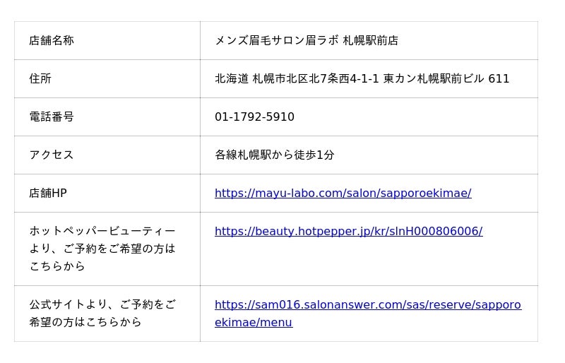 株式会社ベルトレンド(本社:大阪府大阪市 代表取締役社長 瀧川 維星)は、2026年4月17日に、全国20店舗目となる「メンズ眉毛サロン眉ラボ 札幌駅前店」をオープンいたします。