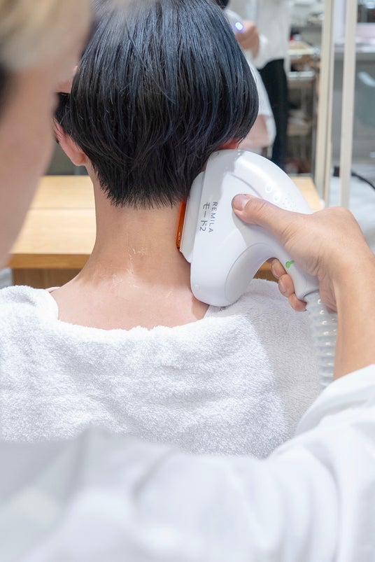 業務用脱毛機「REMILA(レミラ)」が選ばれる理由~全国にのべ700台導入中、業界内で注目を集めているサブスクモデルを採用~「REMILA(レミラ)」は、業務用脱毛機としてSHR(エスエイチアール)方式を採用し、毛質や毛周期に関係なく施術可能です。これにより、痛みを感じにくく、毛の色や太さに関わらず対応できます。月額サブスクリプションで提供され、特に「ネープケア(襟足・うなじ部分)」に特化。ネープ部分をケアすることで、清潔感や小顔効果、首を長く見せる印象を作り出し、スタイリストに新たなデザインの幅を広げます。
