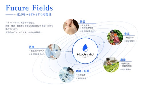 このハイドレイド技術は、空気中の水分子だけを使う純粋な水粒子であるため髪や肌に限らず、植物や食品など様々な分野で本質的なインナーケアを実現する可能性を秘めています。