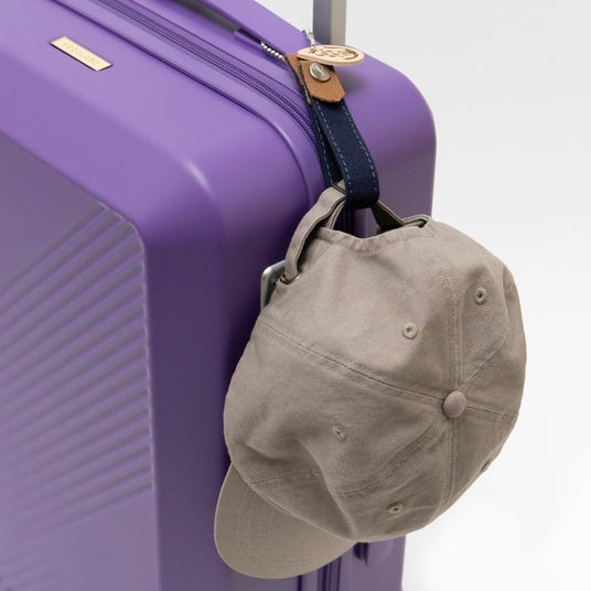本体のラベンダーカラーをより引き立てるシックで洗練されたパープルカラーのループチャームは、スーツケースのアクセントや目印として最適です。ホック留め仕様で、帽子などの軽い荷物を一時的に掛けることもできます。