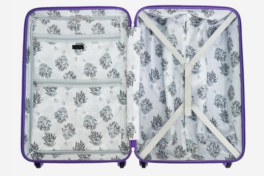 本体カラーのラベンダーに合わせて、リボンで可愛らしくまとめられたラベンダーブーケをモチーフにしたイラストが散りばめられ、旅の準備をするワクワク感を一層盛り上げてくれます。