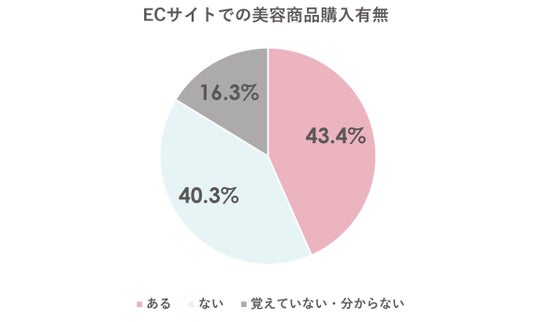 昨今、ECサイトやECモールでの美容商品の購入が生活者の間で定着しており、特にQoo10メガ割や楽天スーパーセール、Amazon プライムデーなど、セール時期を狙って買い物をするユーザーが増えてきているようです。過去にMimi BeautyがおこなったECサイトでの美容商品購入経験についての調査でも、約43%が「ECサイトで購入したことがある」と回答しています。