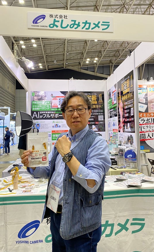 よしみカメラ代表取締役 一木尚敏氏が会場でご着用。希少ヴィンテージの存在感と共に、体験価値の訴求を強化いたしました。