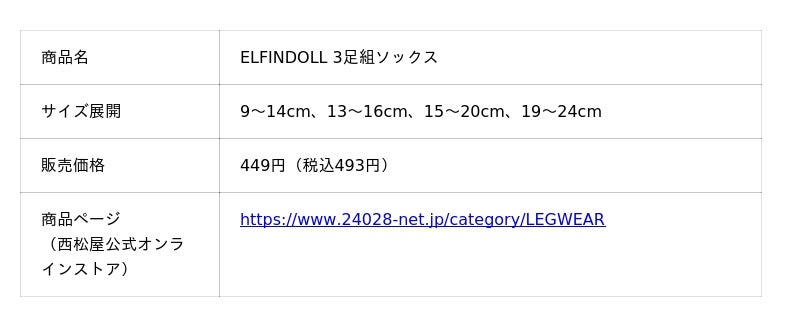 株式会社西松屋チェーン(兵庫県姫路市、代表取締役社長:大村浩一)は、お子さまの毎日にもっと快適さをお届けするため、プライベートブランド「ELFINDOLL(エルフィンドール)」のソックスをリニューアルし、全国の西松屋店舗および公式オンラインストアにて販売開始いたしました。