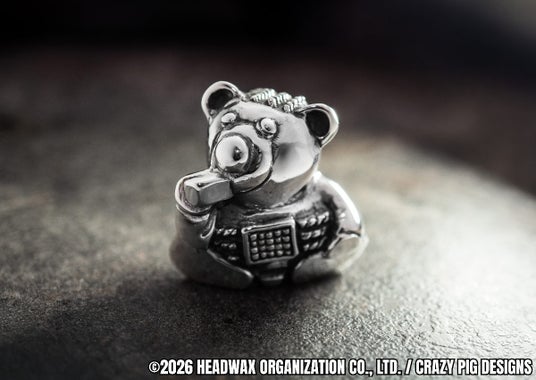 本作は、hide x CRAZY PIG DESIGNS コラボレーション第三弾として発表された『PSYCHO TEDDY BEAR KEYRING』をブレスレットとして再構築した作品です。