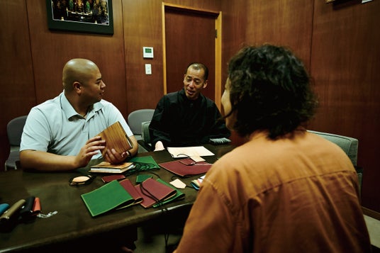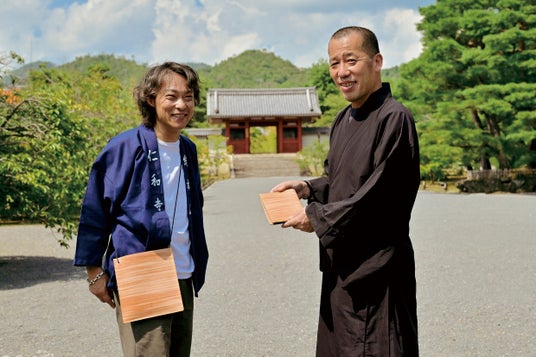 左:株式会社ブルックリン 革職人兼代表取締役 草ヶ谷昌彦 右:真言宗御室派総本山 仁和寺 事業推進室 次長 金崎義真