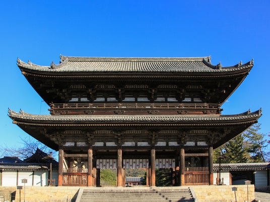 仁和4年(888)に創建された寺院。現在は真言宗御室派の総本山で、境内には五重塔や二王門など江戸時代に建立された建造物が並び、同時期に植えられた御室桜は4月中旬に見頃を迎える。建物と同様、当時と同じ姿を現在に伝え、平成6年には世界遺産に登録されている。