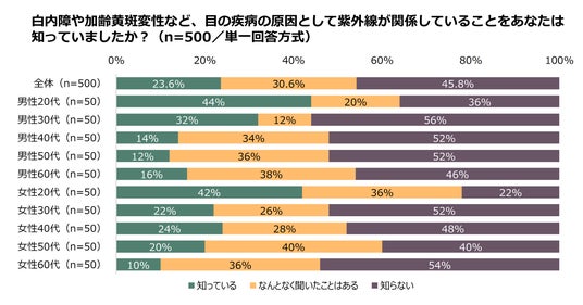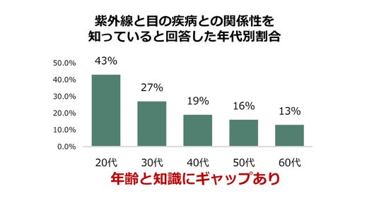 「紫外線と目の疾病の関係性を知っている」23.6%にとどまる、若年層ほど正しい知識を保有