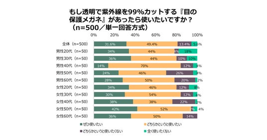 ・「紫外線を99%カットする透明レンズの保護メガネ」81%があったら使いたいと回答
