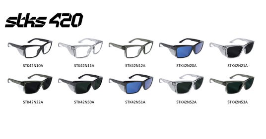 ボレー・セイフティではデザイン性にこだわったウェリントンタイプの保護メガネ「STKS(スティックス)」シリーズを展開しています。今回の調査でもニーズの高かった「UVカットレンズ(99.9%遮断)」を標準搭載しており、メガネ選びの基準第3位に入っている、独自の曇らないプラチナコーティングレンズを使っているのも特長です。色なしのクリアレンズと黒いレンズのスモーク、更に反射光をカットしギラつきを抑える「偏光レンズ」の3種からお好きなデザインをお選びいただけます。各種提携店舗では、別モデルの度付き保護メガネも店頭販売も行っています。