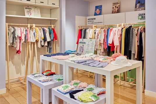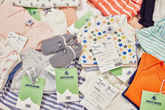 「#プチバトン」は、お客様から着なくなったプチバトーのお洋服を思い出と一緒にお預かりし、次のオーナーへとつなぐ、サステナブルな取り組みです。ブランドを愛用するお客さまと一緒に、持続可能な未来を描いていく活動の一環として展開しています。現在12店舗で回収を行い、再販可能なお洋服はプチバトーブティック 吉祥寺店にて販売しています。