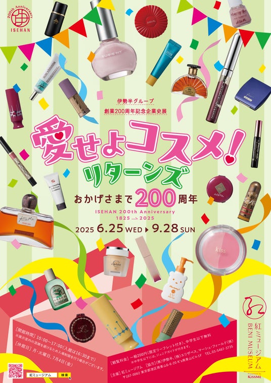 伊勢半グループは、2025年に創業200周年を迎えました。株式会社伊勢半ホールディングス(本社:東京都千代田区、代表取締役社長:澤田晴子)は、この節目を記念して、2025年6月25日(水)より9月28日(日)まで、企業史展「愛せよコスメ!リターンズ-おかげさまで200周年-」を紅ミュージアム(東京都港区南青山)で開催します。