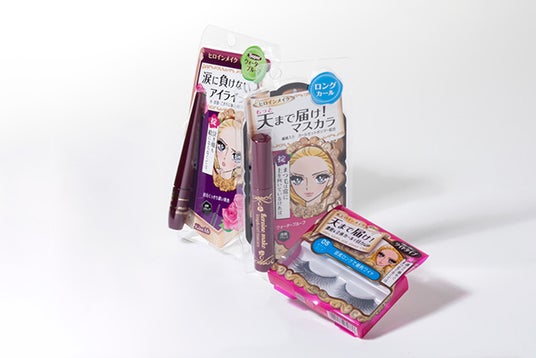 左から)「ヒロインメイク インパクトリキッドアイライナー」2007年発売、「ヒロインメイク ロング&カール マスカラ」2005年発売、「ヒロインメイク インパクトアイラッシュ」2009年発売 涙を流しても雨に降られても顔が崩れず完璧な美しさをキープする少女マンガのヒロインを、耐久性の高さの象徴として、パッケージへデザイン。発売初年から大手口コミサイトの上位にランクインする大ヒットとなった。今も、機能性の高さから年代問わず「ヒロインメイク」ブランドの支持者は多い。