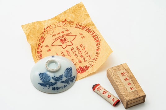 1825年に紅屋として創業した伊勢半が、近代的な化粧品製造を始めるまでの過渡期を紹介。初出陳の「本紅製造問屋組合設立願」や、宮内省大膳寮宛の御願書などの史料、「キスミー」が立ち上げられる前に使用していたブランド「艶蝶(つやちょう)」商品、棒紅の金型などを展示。