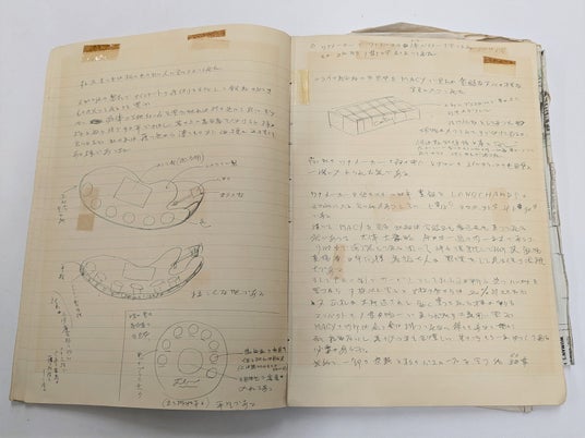 「海外視察時のノート」1951年6~7月 店頭サービスの内容やスケッチ画など見聞きしたものを細かに記録した。