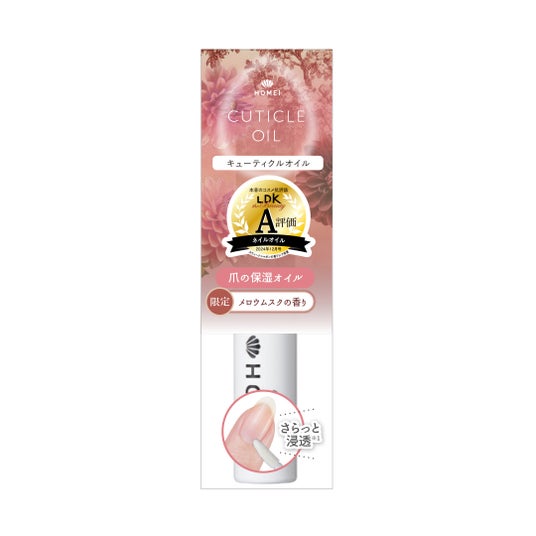 HOMEIキューティクルオイル メロウムスクの香り人気美容誌「LDK the Beauty」2024年12月号でA評価を獲得した※HOMEIキューティクルオイルから、「メロウ=やわらかく心地よい」雰囲気ただよう、洗練されたムスクの香りが数量限定で登場。※スウィートシャボンの香りで受賞